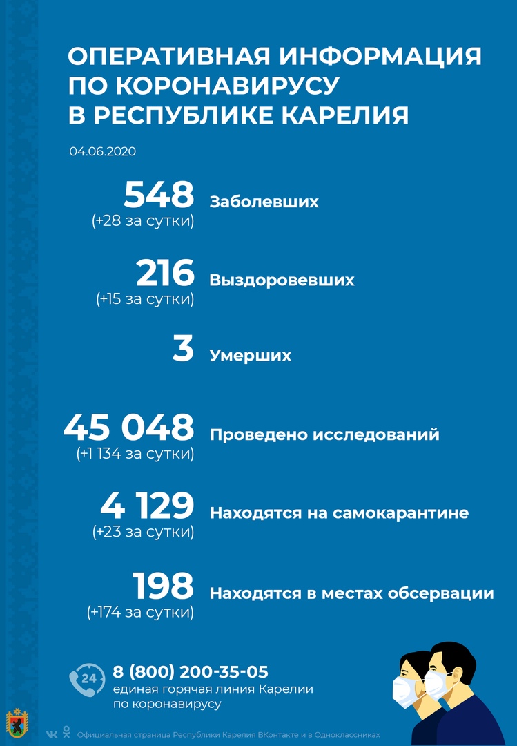 28 новых случаев коронавируса подтвердили в Карелии за минувшие сутки, — информация об этом появилась на официальной странице Правительства.
