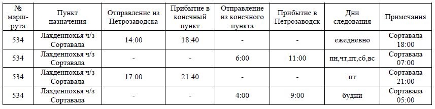С 9 февраля вносятся изменения в расписании движения пассажирских автобусов, выполняющих рейсы по маршрутам № 534 «Петрозаводск – Лахденпохья через Сортавала». Об этом сообщает петрозаводский автовокзал.