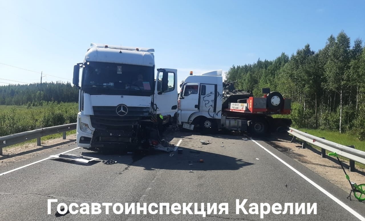 Смертельное ДТП произошло в Сегежском районе также 28 июля. В 10:28 на 676 км федеральной автодороги Р-21 «Кола». 69-летний водитель «Toyota», двигаясь в направлении Санкт-Петербурга, выехал на полосу встречного движения, где столкнулся с «Mercedes — Benz Actros» c полуприцепом TSR и «Sitrack С7Н» c полуприцепом МАНАК. В результате ДТП водитель Toyota скончался на месте происшествия до прибытия бригады скорой медицинской помощи, 68-летняя пассажирка Land Cruiser’а получила телесные повреждения, бригадой СМП госпитализирована.