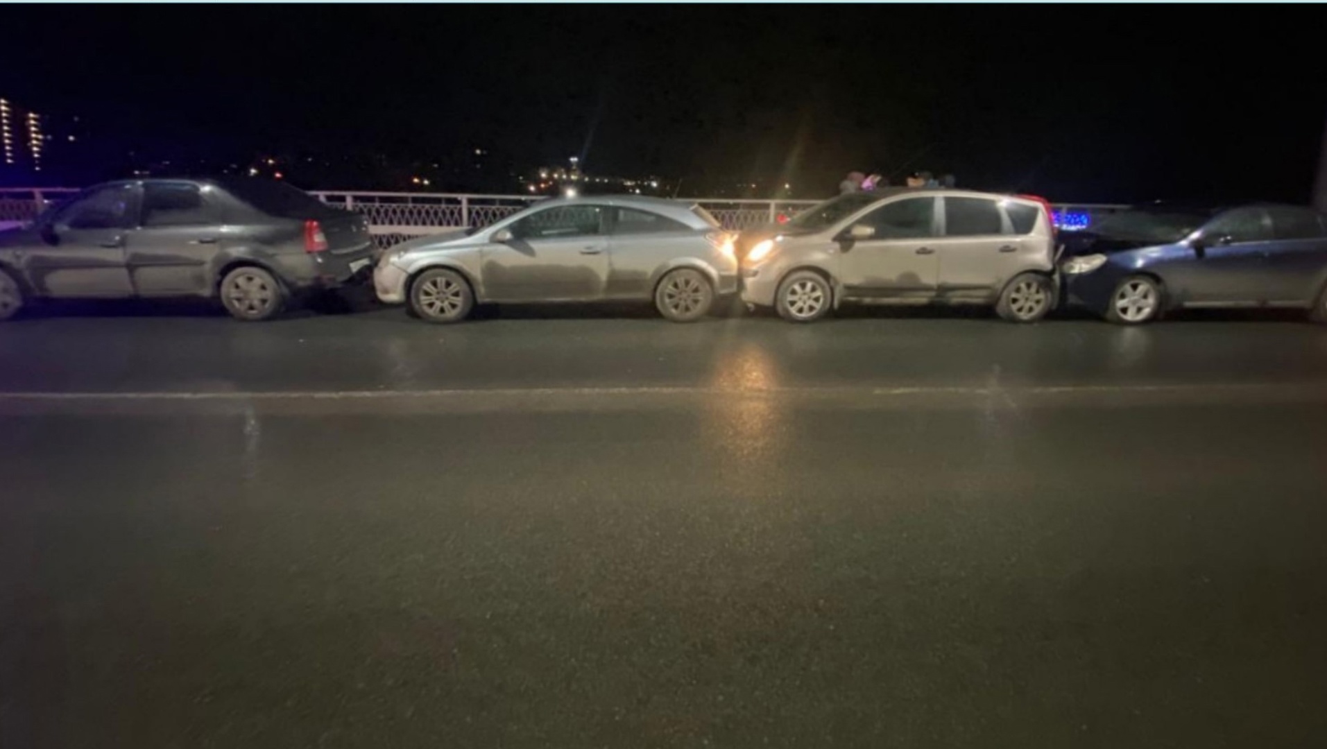 В этот же день в 18:50 на Гоголевском мосту столкнулись автомобили «Chevrolet Epica», «Nissan Note», «Opel Astra» и «Renault Logan». В результате происшествия телесные повреждения получила 60-летняя пассажирка «Chevrolet», женщине назначено амбулаторное лечение.