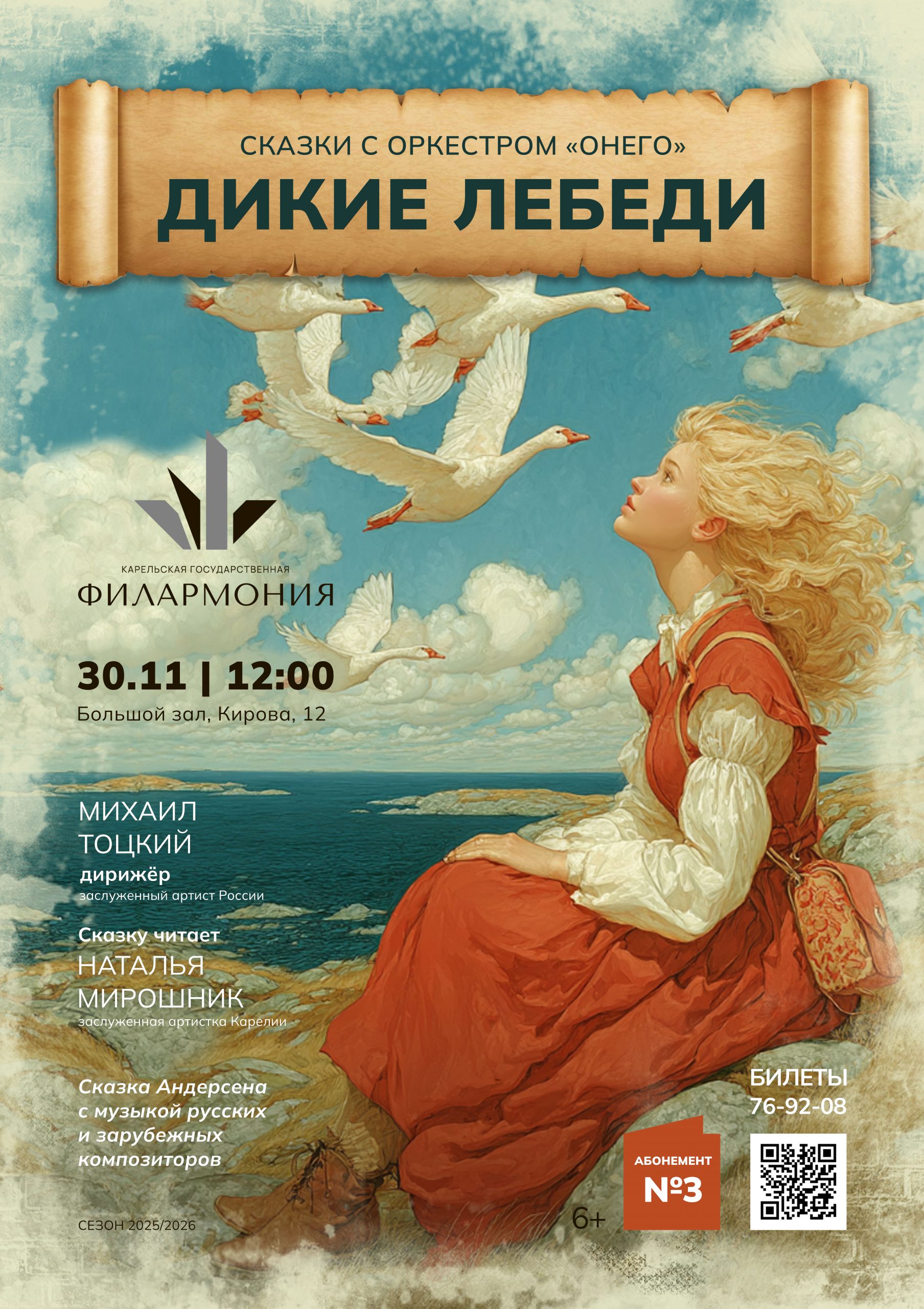 Исполнители: Оркестр «Онего», дирижёр — заслуженный артист России Михаил Тоцкий. Художественное слово — актриса Театра драмы «Творческая мастерская», заслуженная артистка Карелии Наталья Мирошник. В программе: сказка Г. Х. Андерсена, музыка русских и зарубежных композиторов.