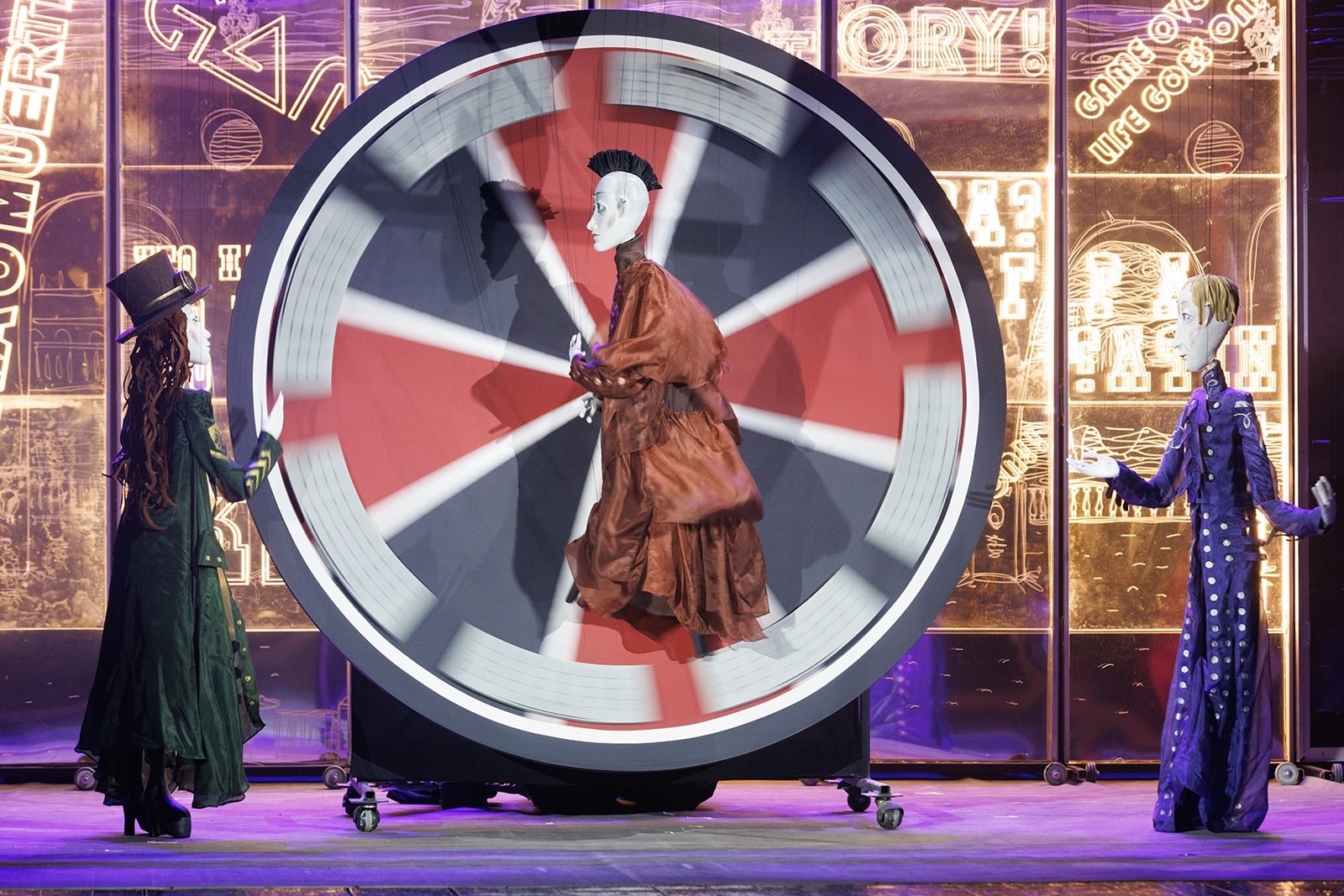 В центре сюжета — женские персонажи, противопоставляющие свою силу духа и ответственность мужской слабости и инфантильности. Как и в любом другом водевиле, постановка наполнена музыкой, песнями и куплетами, комичными ситуациями и даже элементами театрального «хулиганства». Необычные куклы, становящиеся выразительными персонажами, добавят зрелищу особый шарм. Сценография постановки, пародирующая стиль оперного театра, усиливает комедийный эффект.