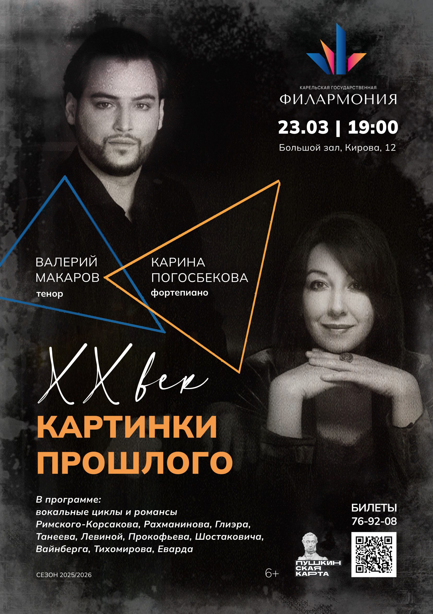 В программе вечера, объединённой сквозной линией, прозвучат изысканные камерные вокальные циклы и романсы Римского-Корсакова, Рахманинова, Глиэра, Танеева, Левиной, Прокофьева, Шостаковича, Вайнберга, Тихомирова, Еварда — как признанные шедевры, так и редко исполняемые жемчужины русской музыки. Поэтические и прозаические тексты Блока, Агнивцева, Маяковского, Мандельштама, Ахматовой, Пастернака, Евтушенко, Турбиной, Новожёнова, Федякина и Хубулава создадут многогранный образ времени, его надежд и тревог.