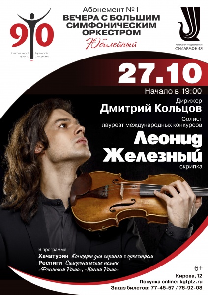 В Карельской филармонии продолжится серия юбилейных концертов «К 90-летию оркестра» с приглашенными звездными солистами. В эту пятницу на сцене Большого зала — один из самых ярких и многообещающих скрипачей своего поколения Леонид Железный.