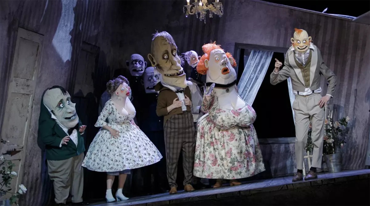 Спектакль режиссера Игоря Казакова и художника Татьяны Нерсисян превращает всех персонажей «Ревизора» в деформированных кукол. Эти куклы даже не пытаются дублировать человеческий облик, а наоборот, демонстрируют уродливость, мертвенность, гипертрофированность внешних черт, отражающие пустоту внутреннего содержания. Характер каждого персонажа становится зримым настолько, что даже метаморфозы Хлестакова от начала спектакля к его финалу становятся визуальными.
