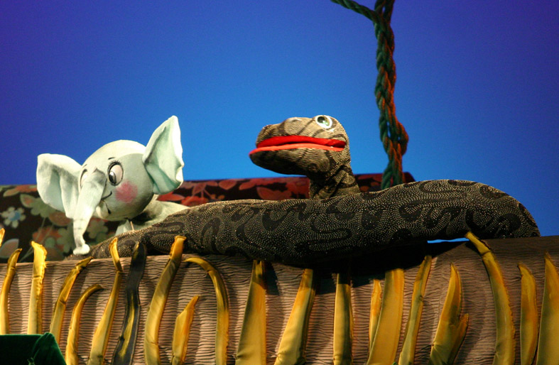 Это было давным-давно, когда у слонов еще не было хобота. Однажды Слоненок решил выяснить, что ест на обед… Крокодил. Услышав вопрос, другие обитатели джунглей с радостью отправили его к реке. Слоненок честно отправился в путь, дошел и обратился к Крокодилу с этим вполне невинным вопросом. Но тот схватил его за нос и стал затягивать в воду. Долго боролись Слоненок и Крокодил. Наконец, Питон вытянул любопытного малыша за задние ноги, но нос слоненка так