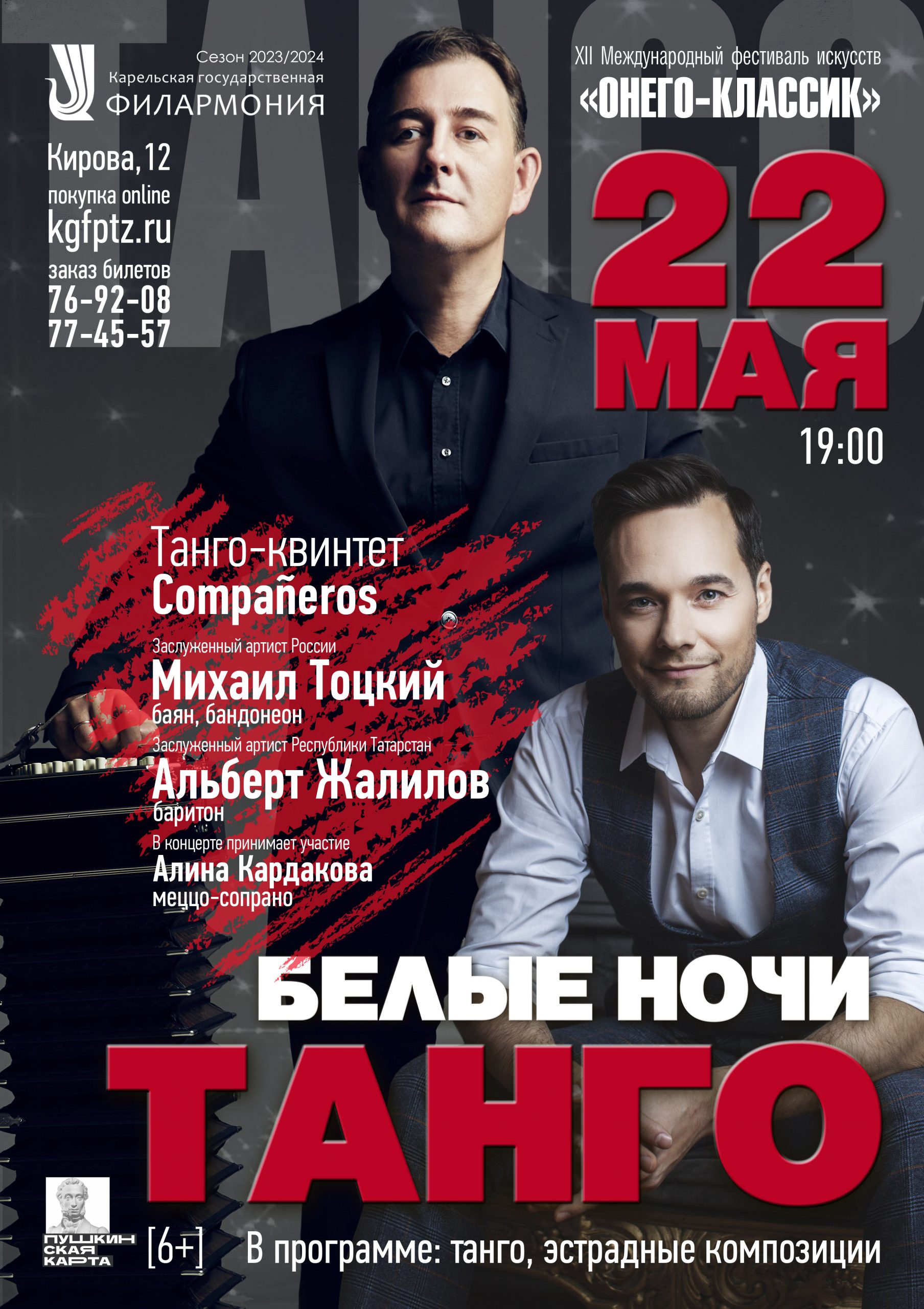 22 мая — Концерт «Белые ночи танго» XII Международного фестиваля искусств «Онего-Классик», (6+)