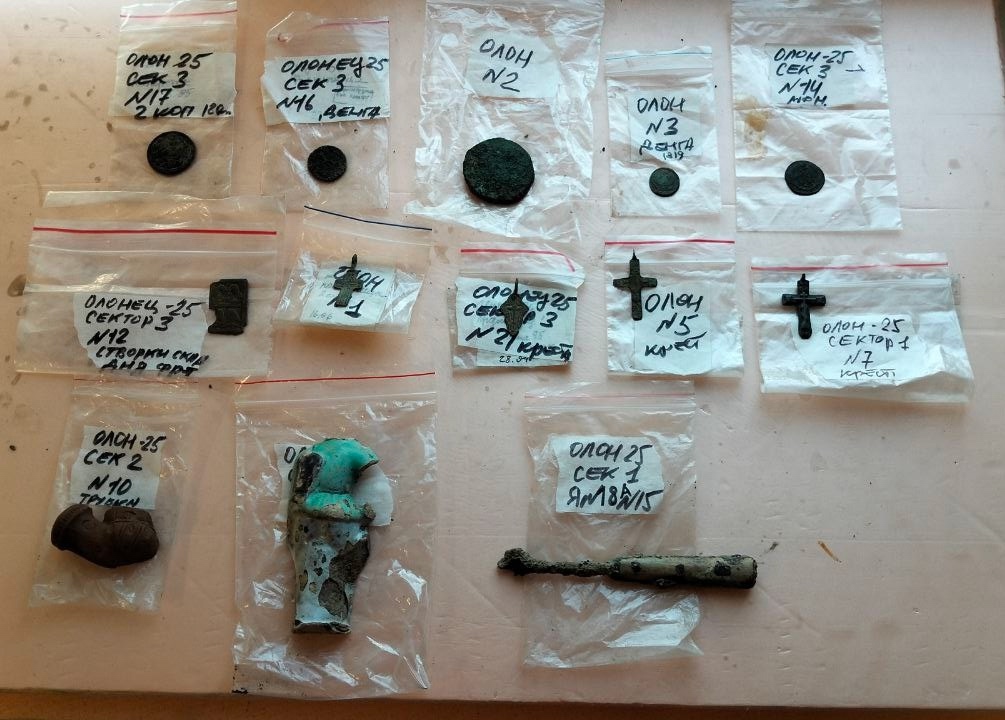 В ходе раскопок были найдены нательные крестики, Екатерининский пятак 18-19 века и другие предметы. Находки планируют отреставрировать.