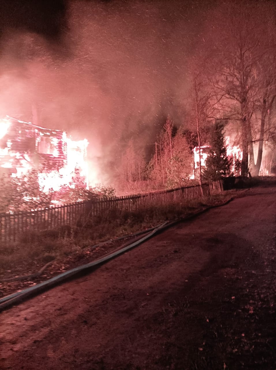 Горело два двухэтажных четырехквартирных дома. В доме, в котором начался пожар еще проживали в одной из квартир, второй дом был полностью нежилым. К моменту приезда первого подразделения пожарной охраны один дом был уже объят огнем по всей площади и пламя перекидывалось на соседний дом.