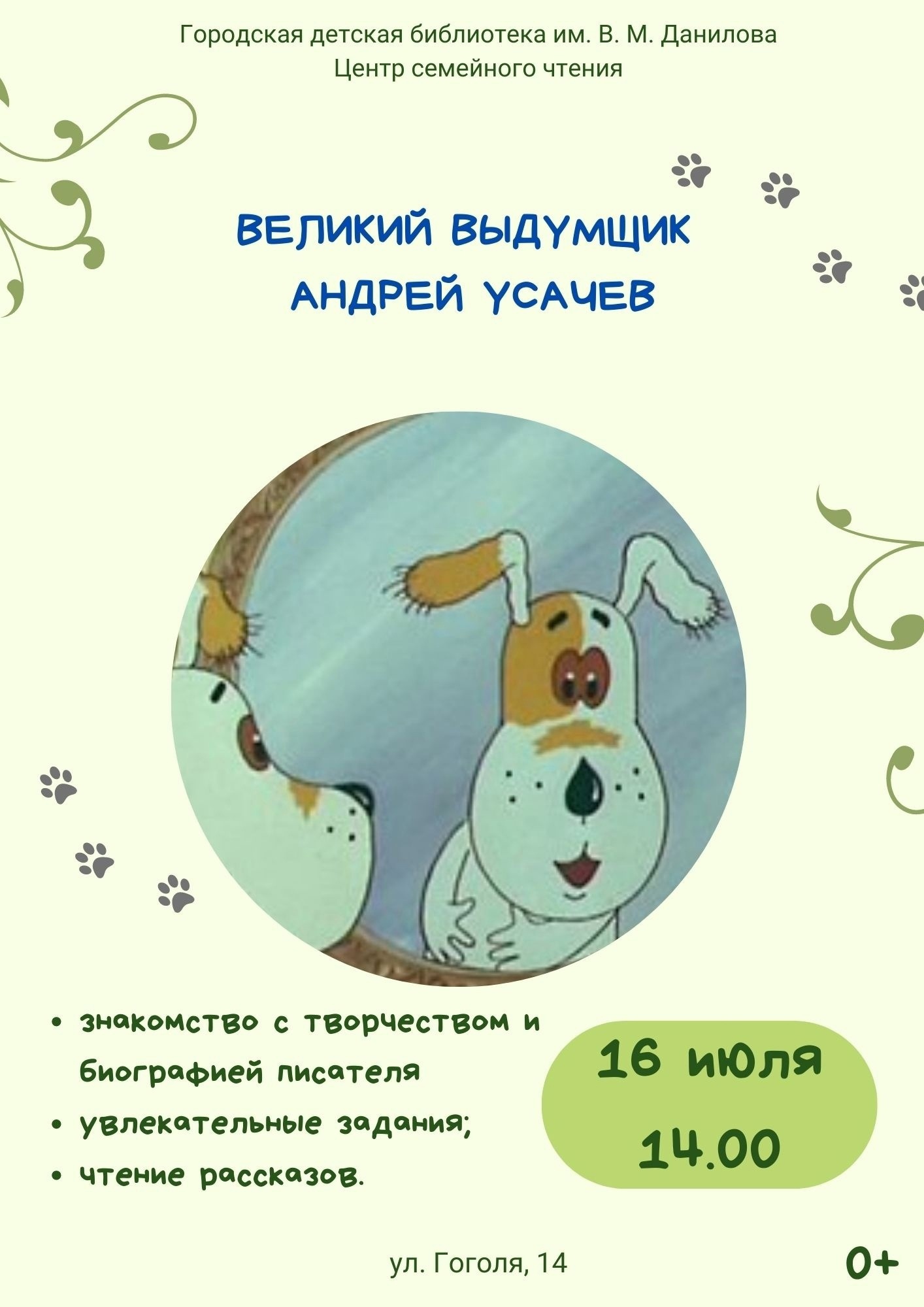 16 июля в 14:00 в Городской детской библиотеке им. В. М. Данилова состоится литературный час с элементами игры, посвященный 65-летию известного детского писателя Андрея Усачева. Об этом сообщает пресс-служба администрации столицы республики.