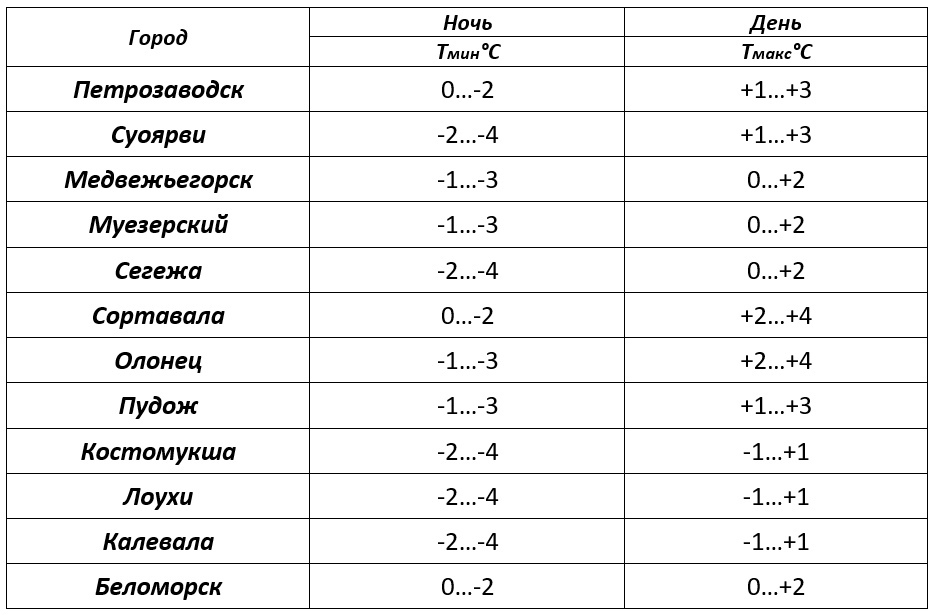 Прогноз погоды по Петрозаводску и городам Карелии на 19.10.2023 по данным центра «Фобос».