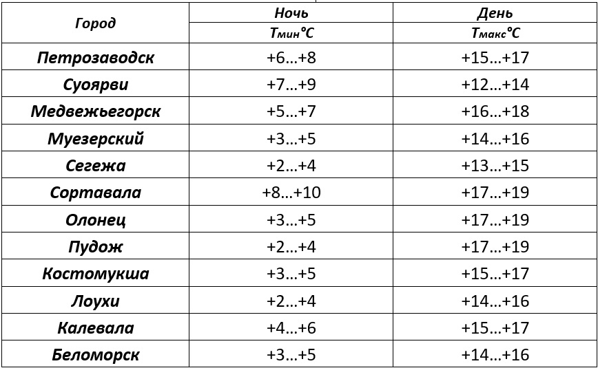 Прогноз погоды по Петрозаводску и городам Карелии на 24.08.2023 по данным центра «Фобос».