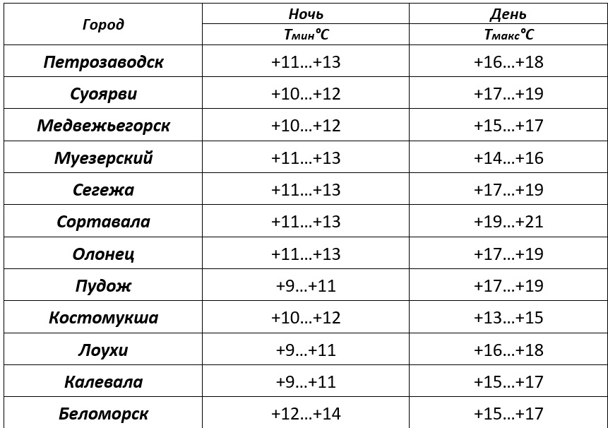 Прогноз погоды по Петрозаводску и городам Карелии на 05.09.2023 по данным центра «Фобос».