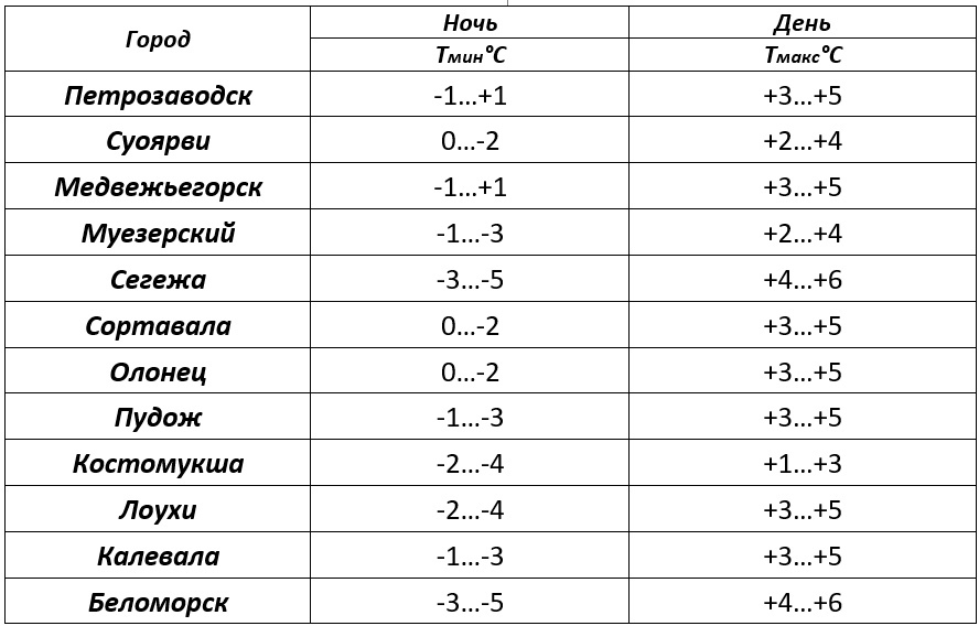 Прогноз погоды по Петрозаводску и городам Карелии на 07.10.2023 по данным центра «Фобос».