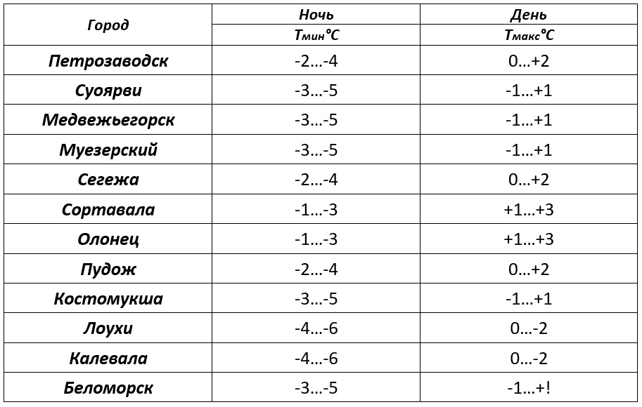Прогноз погоды по Петрозаводску и городам Карелии на 02.03.2022 по данным центра «Фобос».
