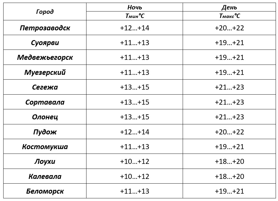 Прогноз погоды по Петрозаводску и городам Карелии на 20.07.2021 по данным центра «Фобос».