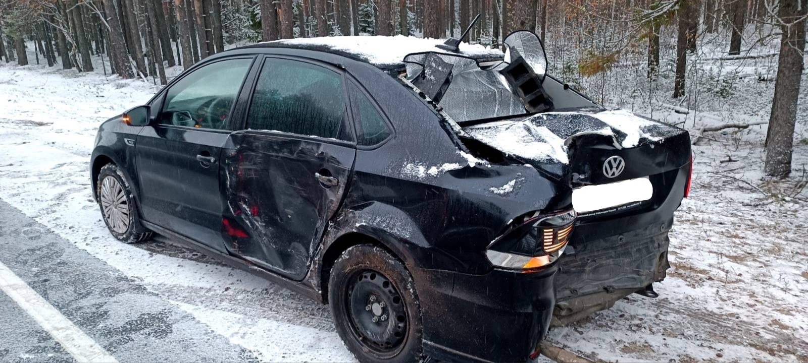 В 21:15 в Сегеже на пересечении улиц Советская и Полевая 19-летний водитель автомобиля «Lada Kalina» не справился с управлением. Его машину занесло, она съехала в кювет и врезалась в дерево. Водитель не пострадал, 20-летнего пассажира попутным транспортом доставили в больницу.
