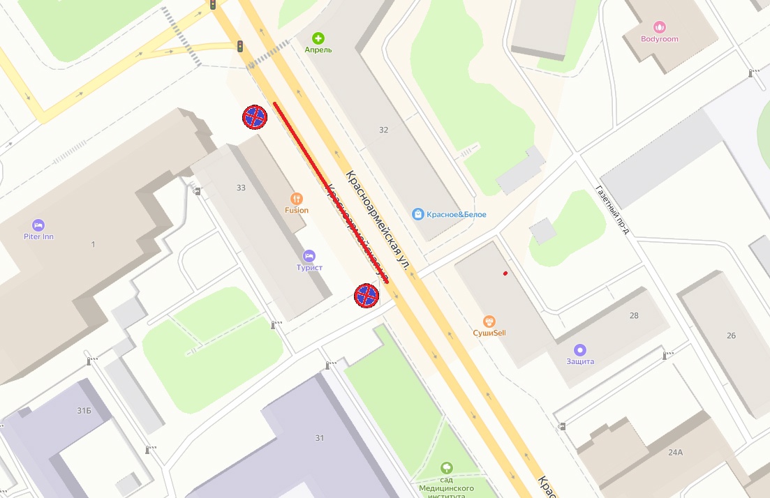 С 31 декабря будет запрещена остановка и стоянка транспорта вдоль дома №33 по Красноармейской улице. Ограничения будут действовать с 00:00 до 06:00 для качественной уборки территории.