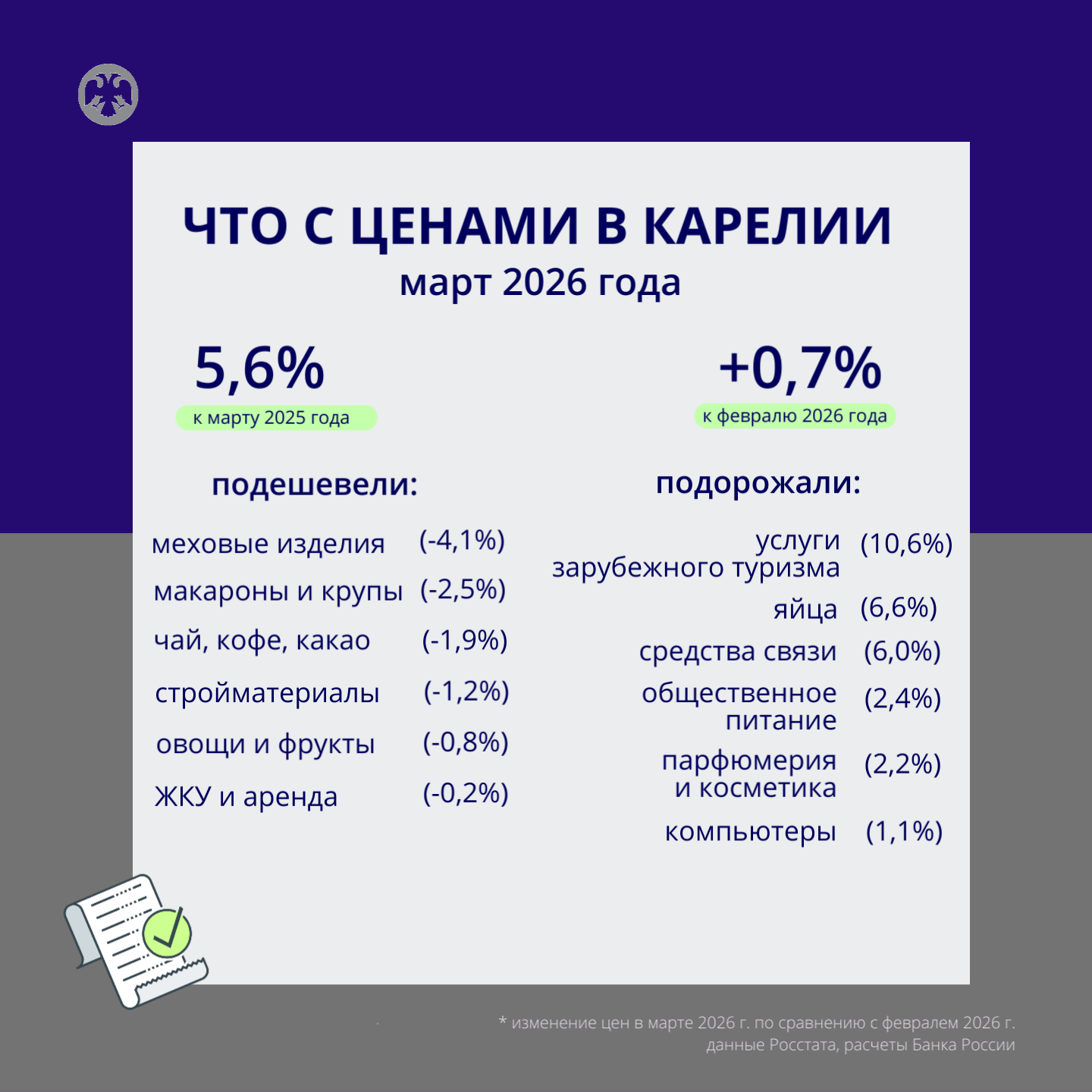 Цены в Карелии в марте выросли на 0,72% по сравнению с февралем. Некоторые товары и услуги дорожали из-за увеличения издержек производителей и поставщиков, а также в связи с ростом спроса.