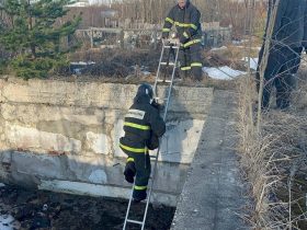 Вчера в Кемском округе дежурный караул ПЧ-22 спас собаку, застрявшую в трехметровой яме.