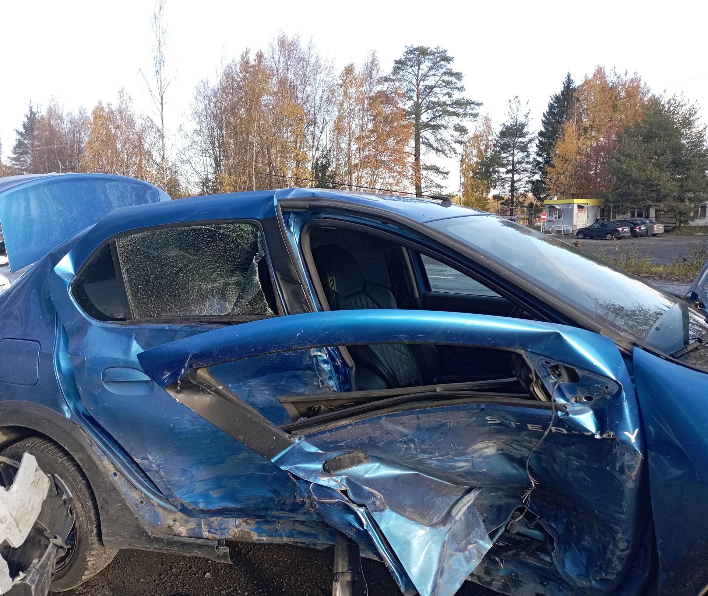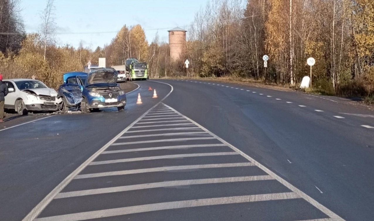 На 4-м километре автодороги «Кола» 49-летний водитель автомобиля «Renault» превысил скорость, не справился с управлением и столкнулся с автомобилем «Nissan», который двигался во встречном направлении прямо.