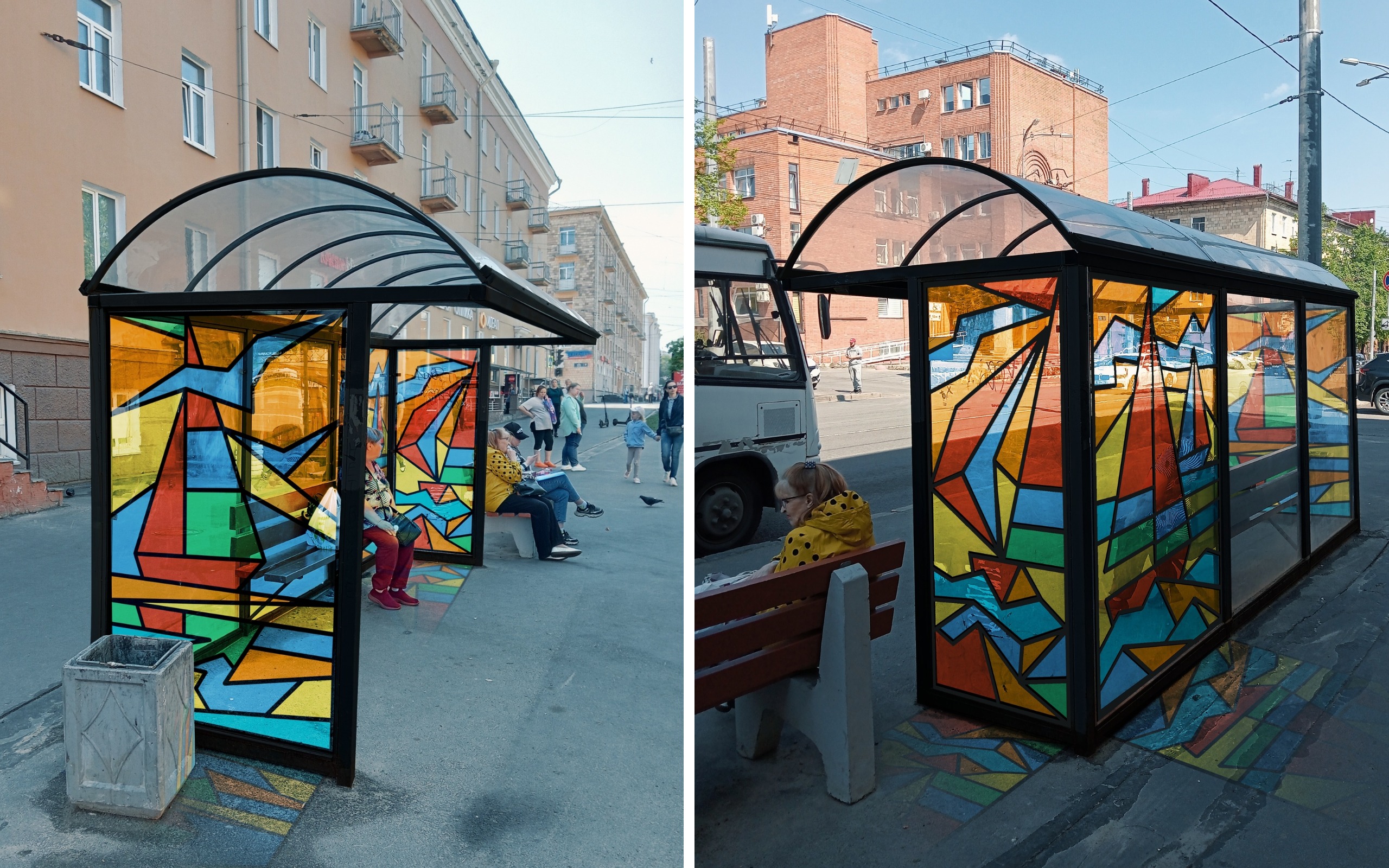 В городе появятся автобусные остановки с витражным панно — так власти решили творчески бороться с вандалами, которые портят остановки граффити.
