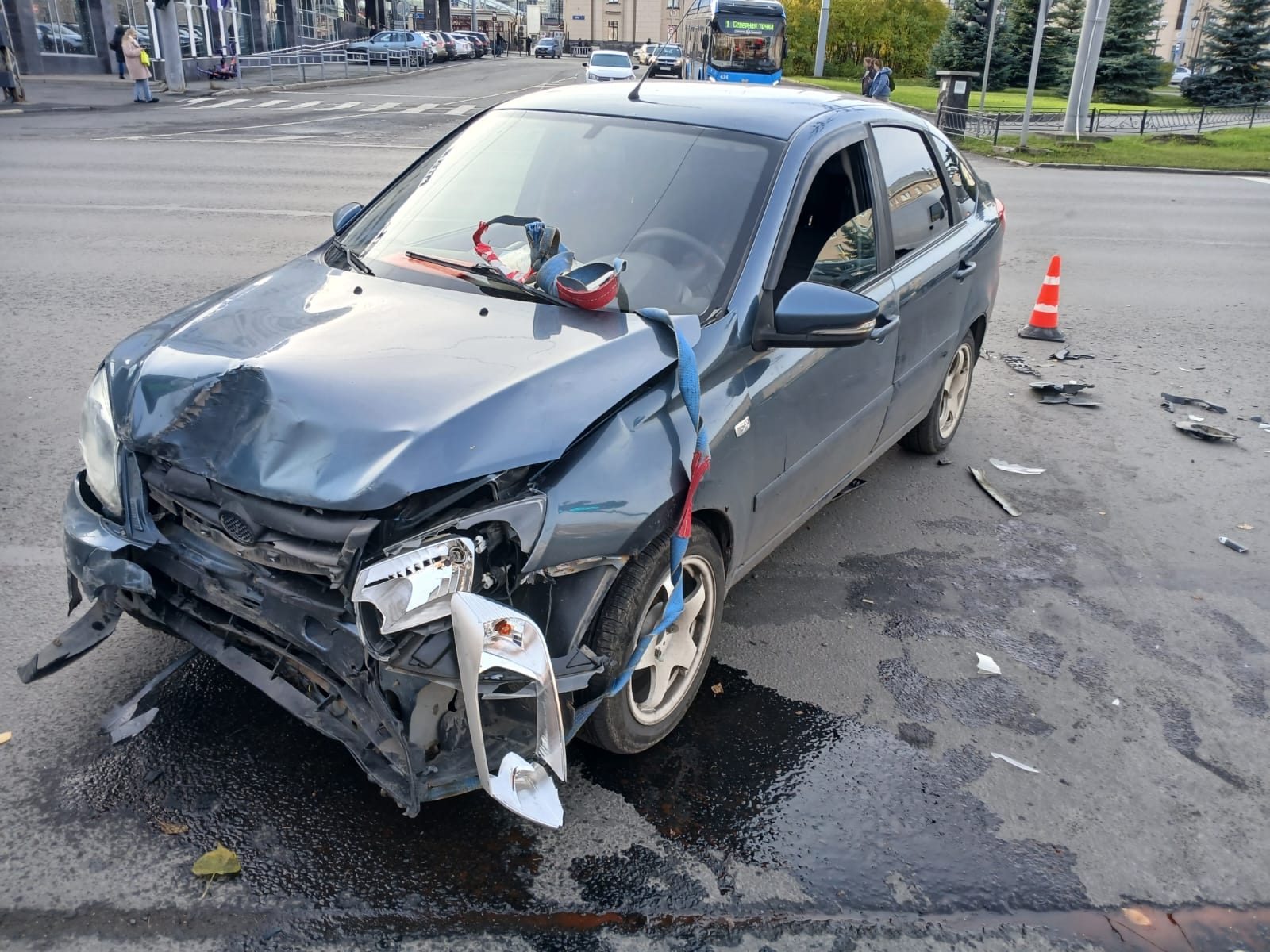19 октября в 13.20 в районе дома № 37 по проспекту Ленина, 63- летний водитель автомобиля «LADA Granta» выехал на перекресток на красный сигнал светофора и столкнулся с «Renault».