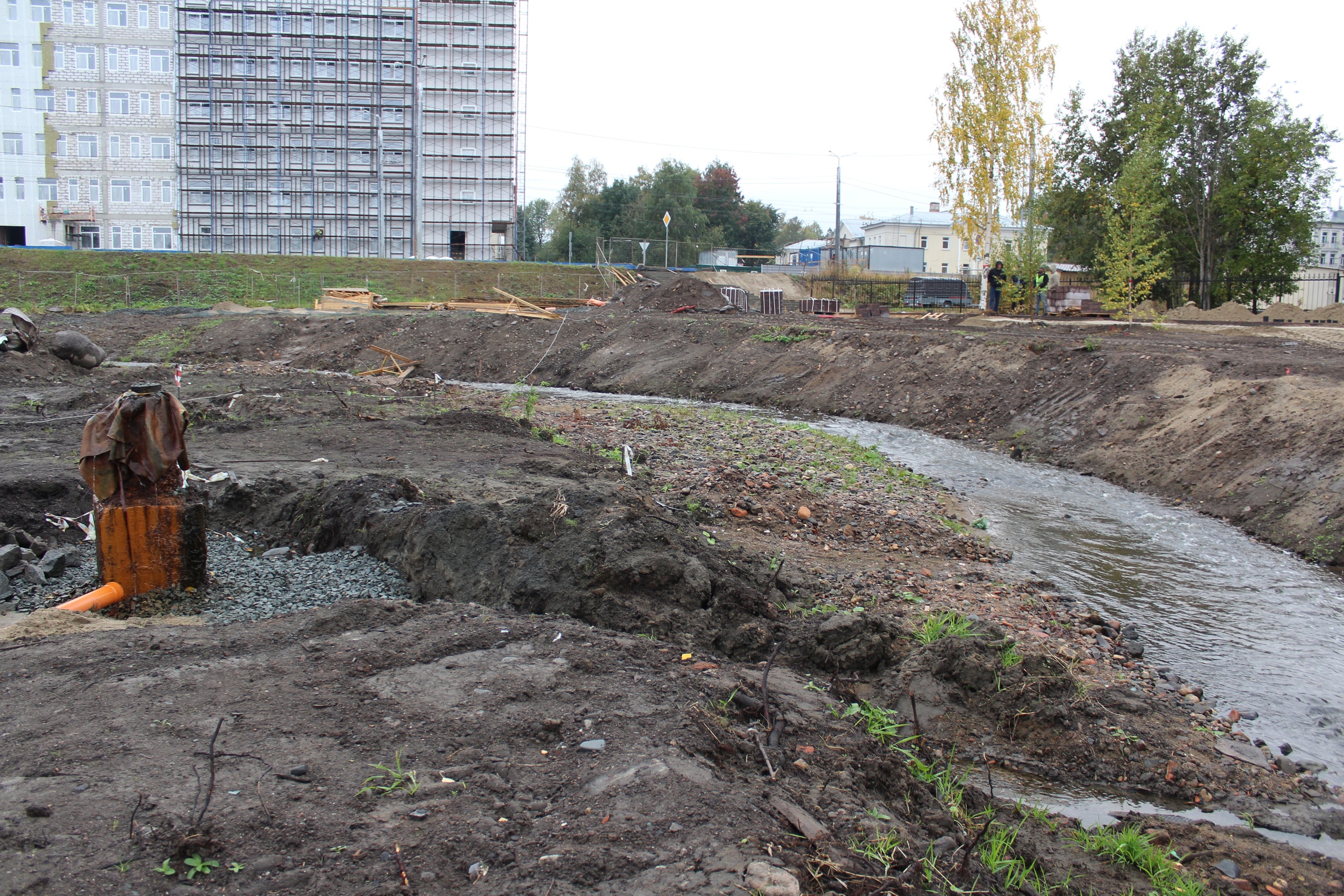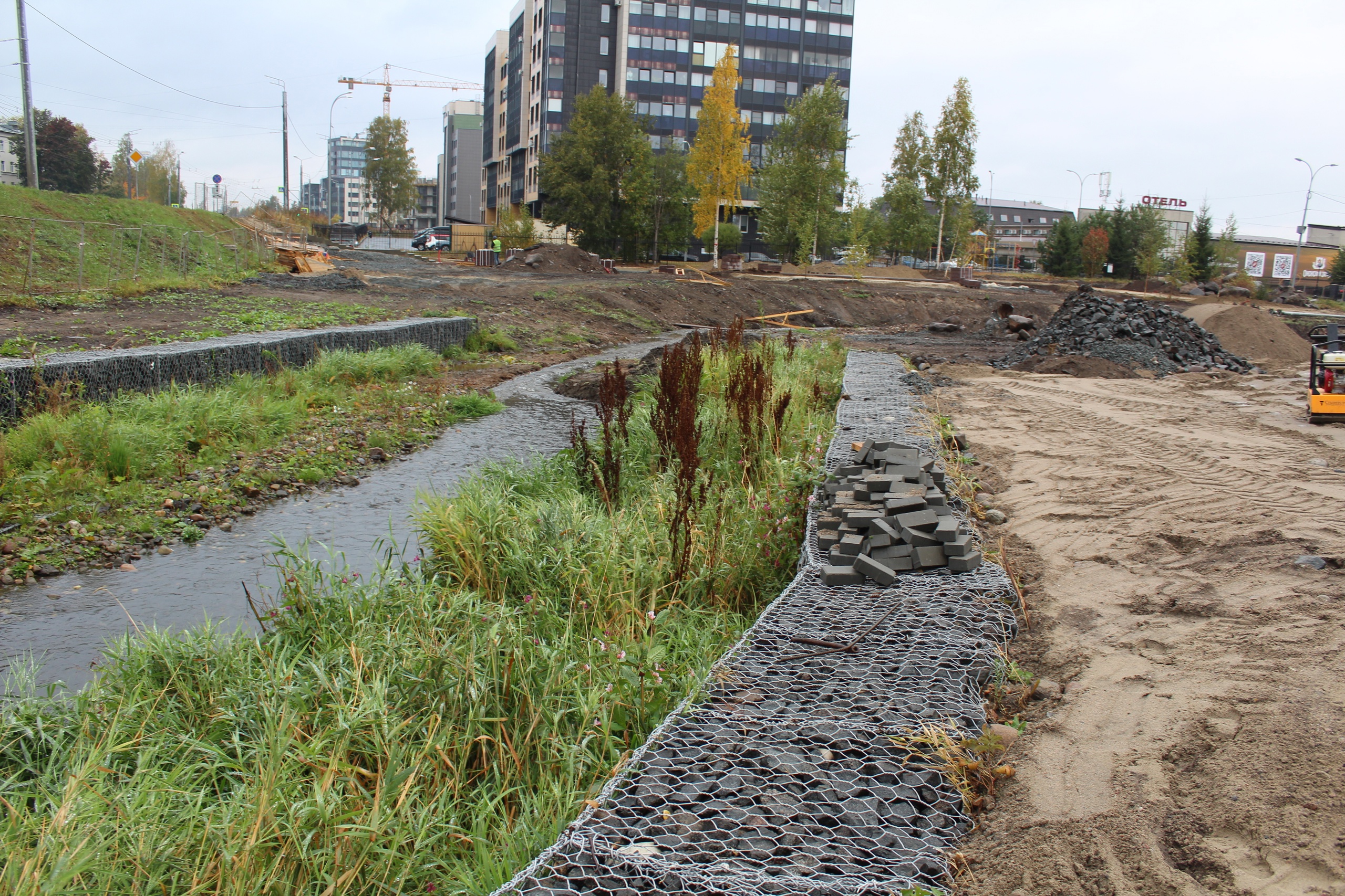 В историческом центре Петрозаводска благоустраивают скверы Источник и Иссерсоновский. Как рассказала глава города Инна Колыхматова, сейчас подрядчик укрепляет берега Неглинки габионами, занимается планировкой основания под газон, прокладывает сети для устройства освещения и мостит пешеходные дорожки гранитом.