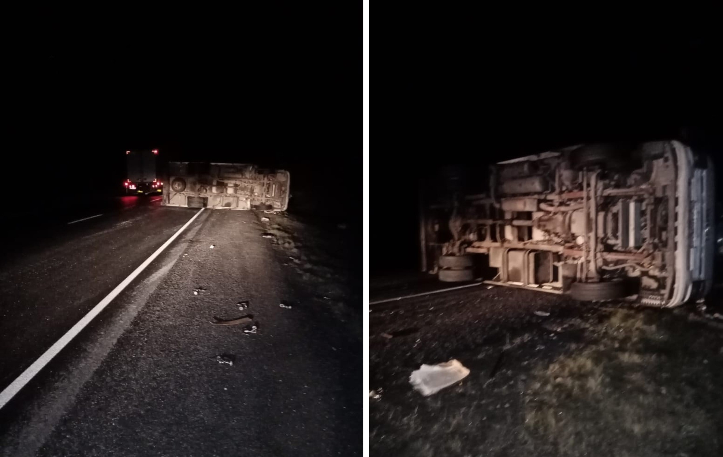 В Карелии ночью в ДТП попал большегруз. Как сообщает Отряд противопожарной службы по Олонецкому району, 10 октября в 2:55 на 322 километре трассы «Кола» грузовик перевернулся на бок.