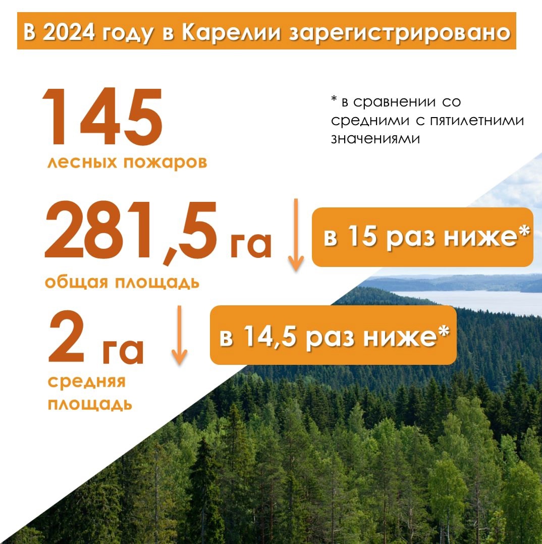 «Считаем, он прошел весьма успешно. К примеру, в сравнении со средними пятилетними значениями общая площадь лесных пожаров в республике в этом году сократилась в 15 раз, а средняя площадь одного пожара – в 14,5 раз. Это подтверждает, что в Карелии грамотно работает система обнаружения и ликвидации возгораний, между ответственными службами налажено хорошее взаимодействие», — говорится в сообщении ведомства.