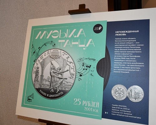 Например, на 25-рублевой серебряной монете, вышедшей в обращение в 2001 году, воссоздан образ непобежденной любви из балета «Ромео и Джульетта» с непревзойденной Галиной Улановой в главной роли. На золотой двухсотрублевой монете 2009 года выпуска медальеры запечатлели удивительную пластику танца на льду.