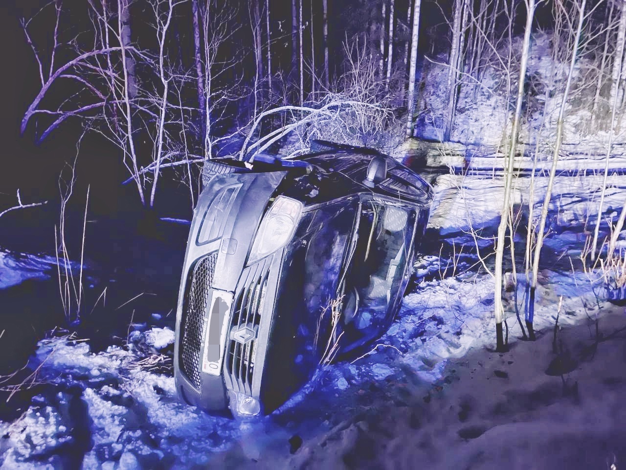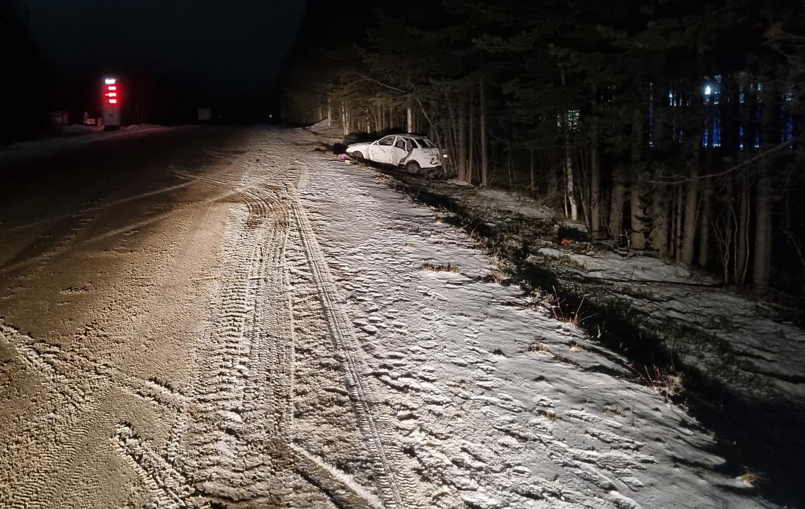 Съезд автомобиля с дороги произошел в Медвежьегорском районе, вблизи поселка Падун, 8 декабря в 18:20. В результате дорожной аварии телесные повреждения получила 41-летняя водитель «Renault Logan», она была госпитализирована.