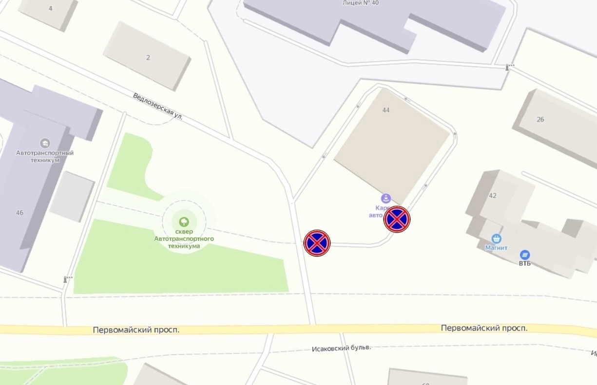 Так, около дома №44 по Первомайскому проспекту запретят остановку и стоянку транспорта. Нововведения призваны обеспечить проезд специализированной техники.