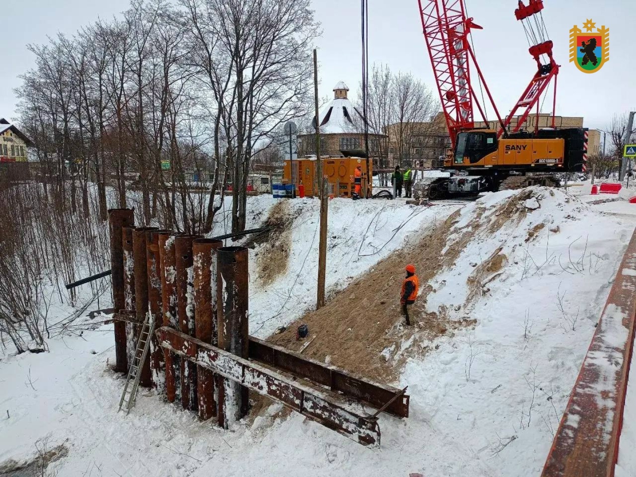 Строители возводят временную переправу, чтобы жители могли спокойно переходить реку во время ремонта моста. На объекте уже установили опоры с обеих сторон реки и укрепляют берег. Временный мост планируют построить до конца первого квартала этого года, а после начнут разбирать старый аварийный.