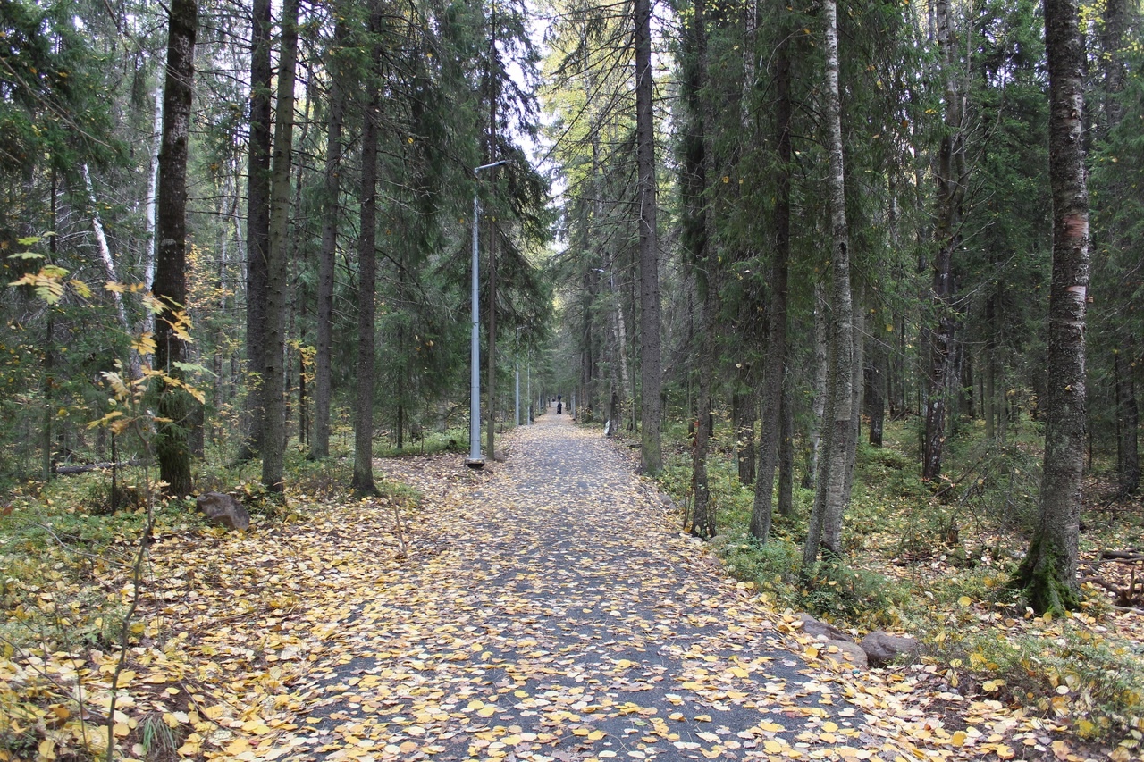 В парке отсыпали пешеходную дорожку, сделали дренаж и установили 18 фонарных столбов. Впереди уборка мусора и порубочных остатков. Эти работы вошли в первый этап благоустройства. В будущем здесь планируют продлить линию освещения.