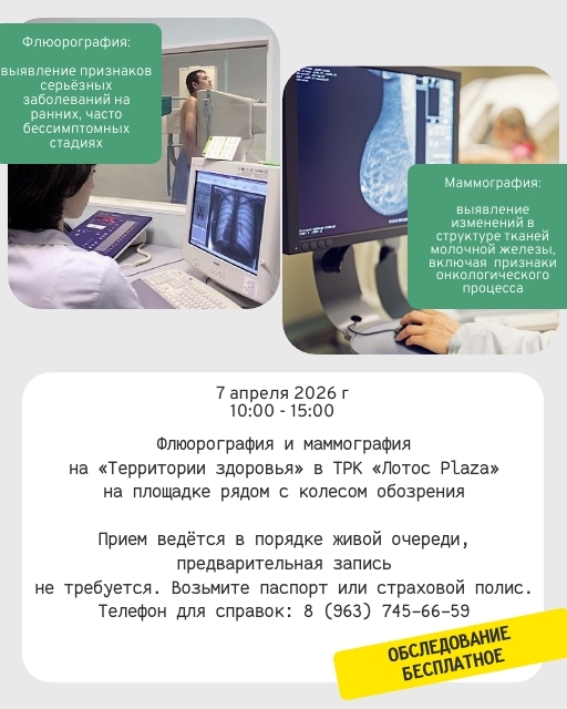 Флюорография позволяет вовремя обнаружить заболевания лёгких, маммография — важный шаг в заботе о женском здоровье.