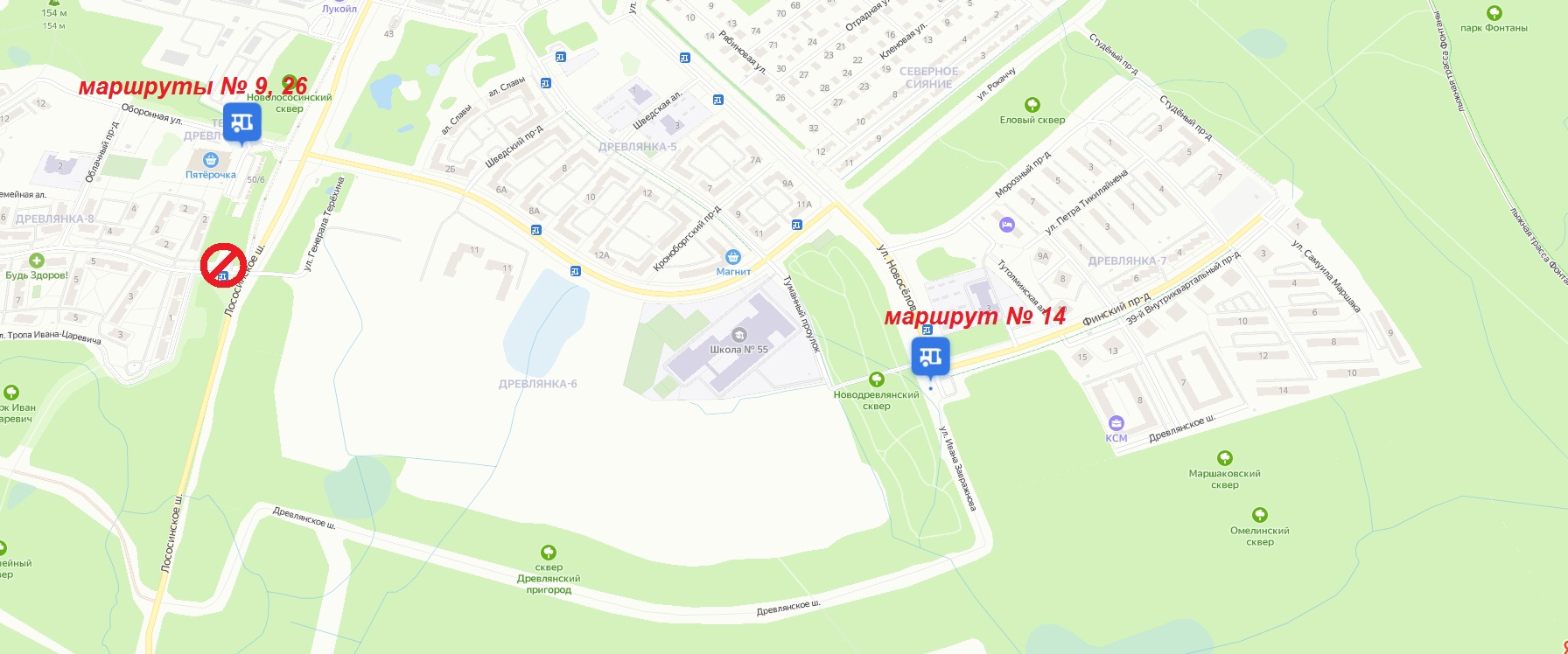 Вместо нее автобусы № 9 и 26 пойдут на соседнюю Оборонную улицу. Конечную остановку перенесут в связи с реконструкцией Лососинского шоссе ориентировочно на один месяц.