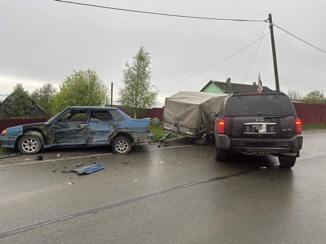 По предварительной информации, 46-летний водитель «Infiniti QX», двигаясь из Ялгубы в Петрозаводск, выехал на полосу встречного движения, где столкнулся с автомобилем ВАЗ с прицепом.