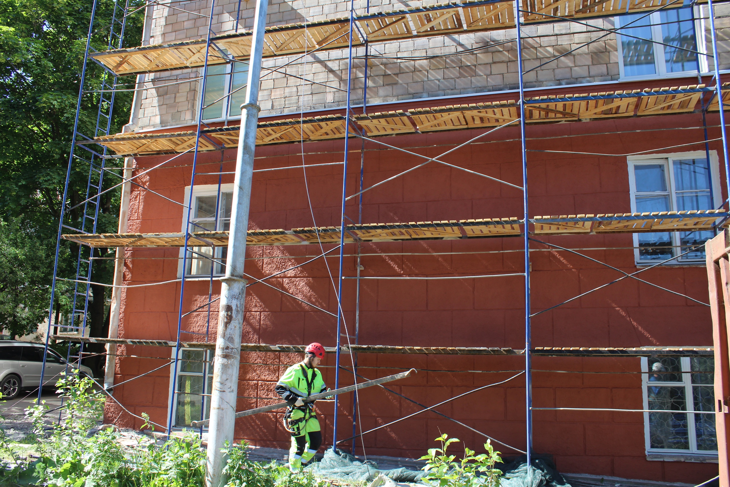 К 100-летию Карелии в центре Петрозаводска продолжается ремонт фасадов зданий. Как сообщили в пресс-службе мэрии города, сейчас в центре города уже ведутся работы по обновлению фасадов 25 многоквартирных домов.