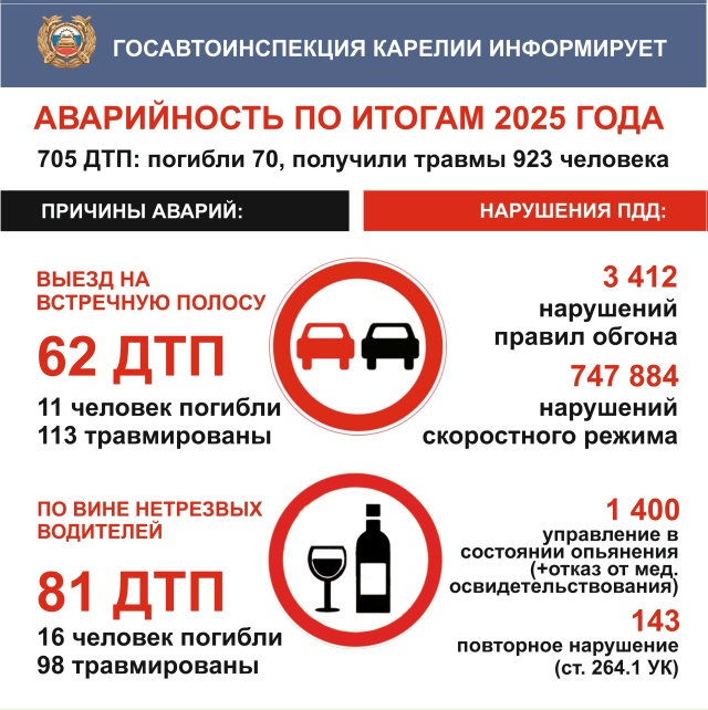 Госавтоинспекция Карелии подвела предварительные итоги аварийности 2025 года.