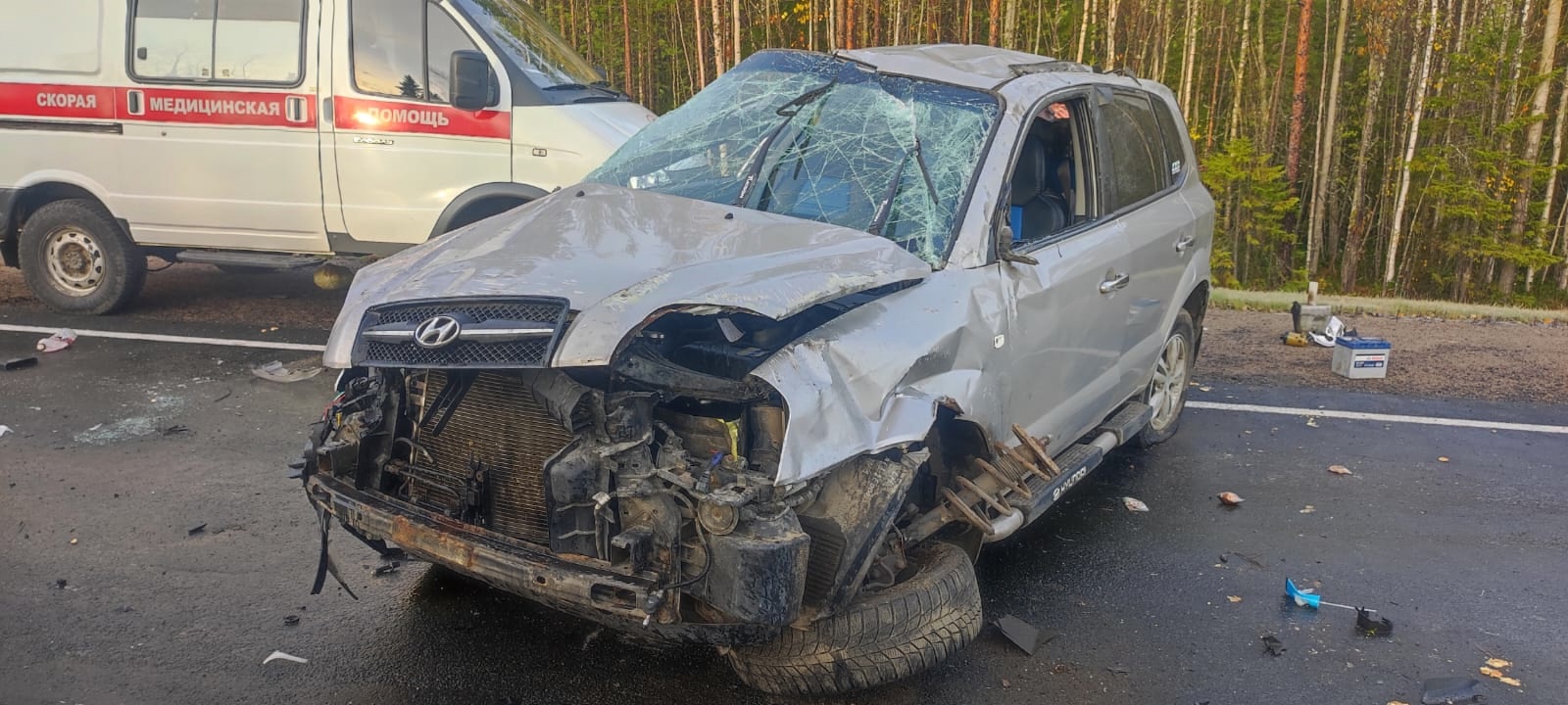 В Лоухском районе авария произошла на 986 км автодороги «Кола» приблизительно в 8:30 утра. По предварительной информации, водитель «Hyundai Tucson», двигаясь в сторону Мурманска, не справился с управлением и его автомобиль перевернулся.