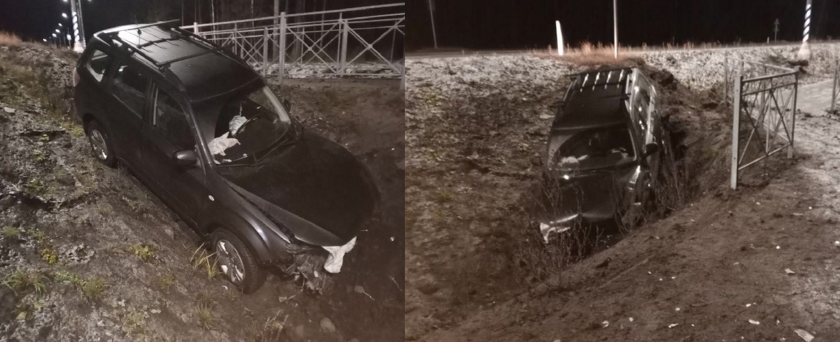 В 7:45 вблизи села Деревянное Прионежского района 23-летняя водитель автомобиля «Honda Civic» при прохождении правого поворота не справилась с управлением, машину занесло, и она опрокинулась в кювет. В аварии был травмирован 22-летний пассажир.