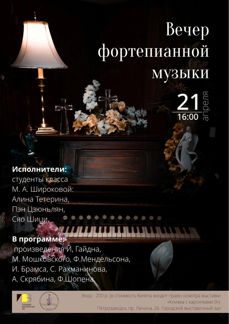 Городской выставочный зал приглашает жителей карельской столицы на вечер фортепианной музыки, сообщает администрация Петрозаводска. Перед слушателями выступят ученики класса преподавателя Петрозаводской государственной консерватории имени А.К. Глазунова Марты Широковой.