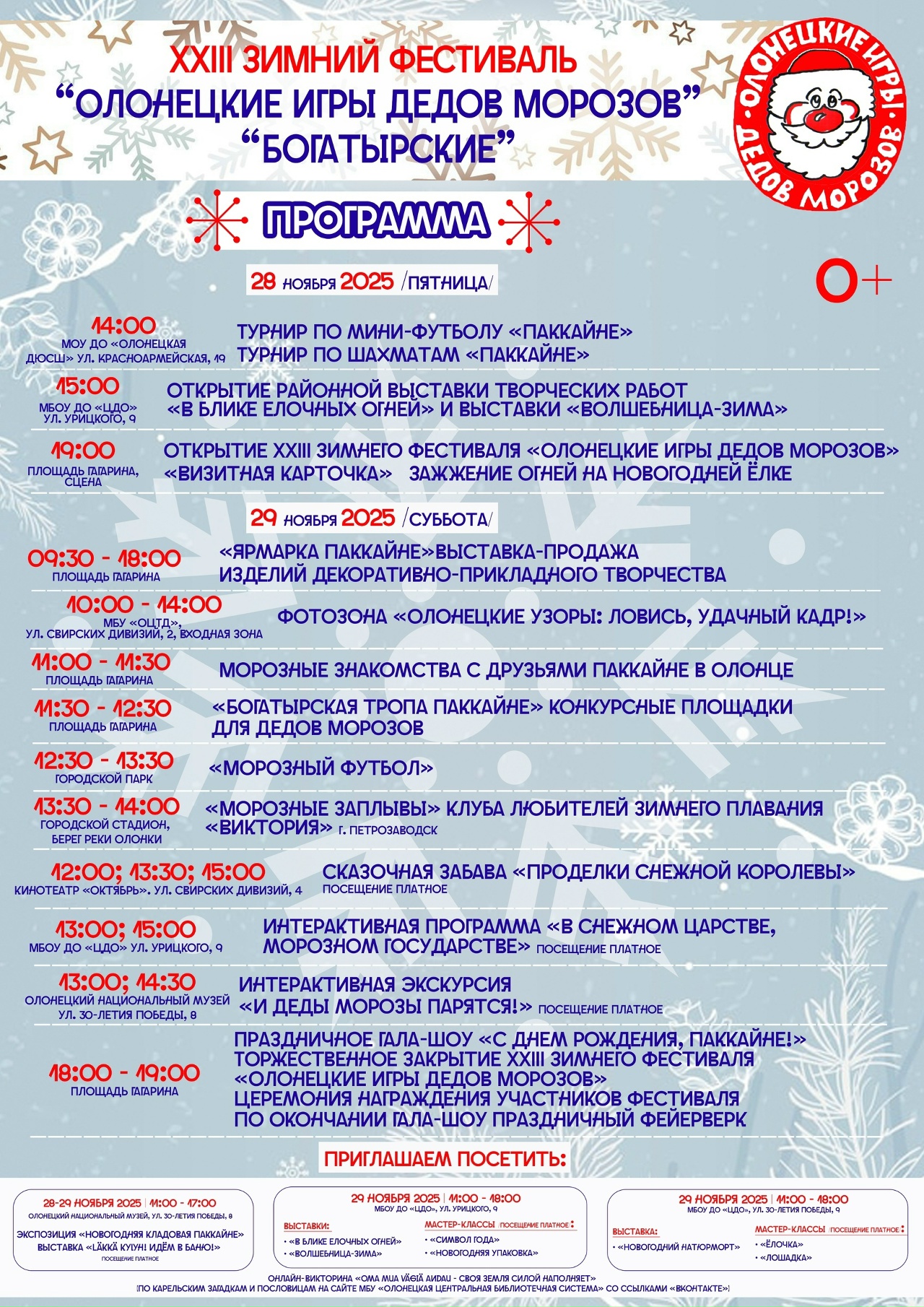 XXIII Зимний фестиваль «Олонецкие игры Дедов Морозов» пройдет в Олонце 28 и 29 ноября.