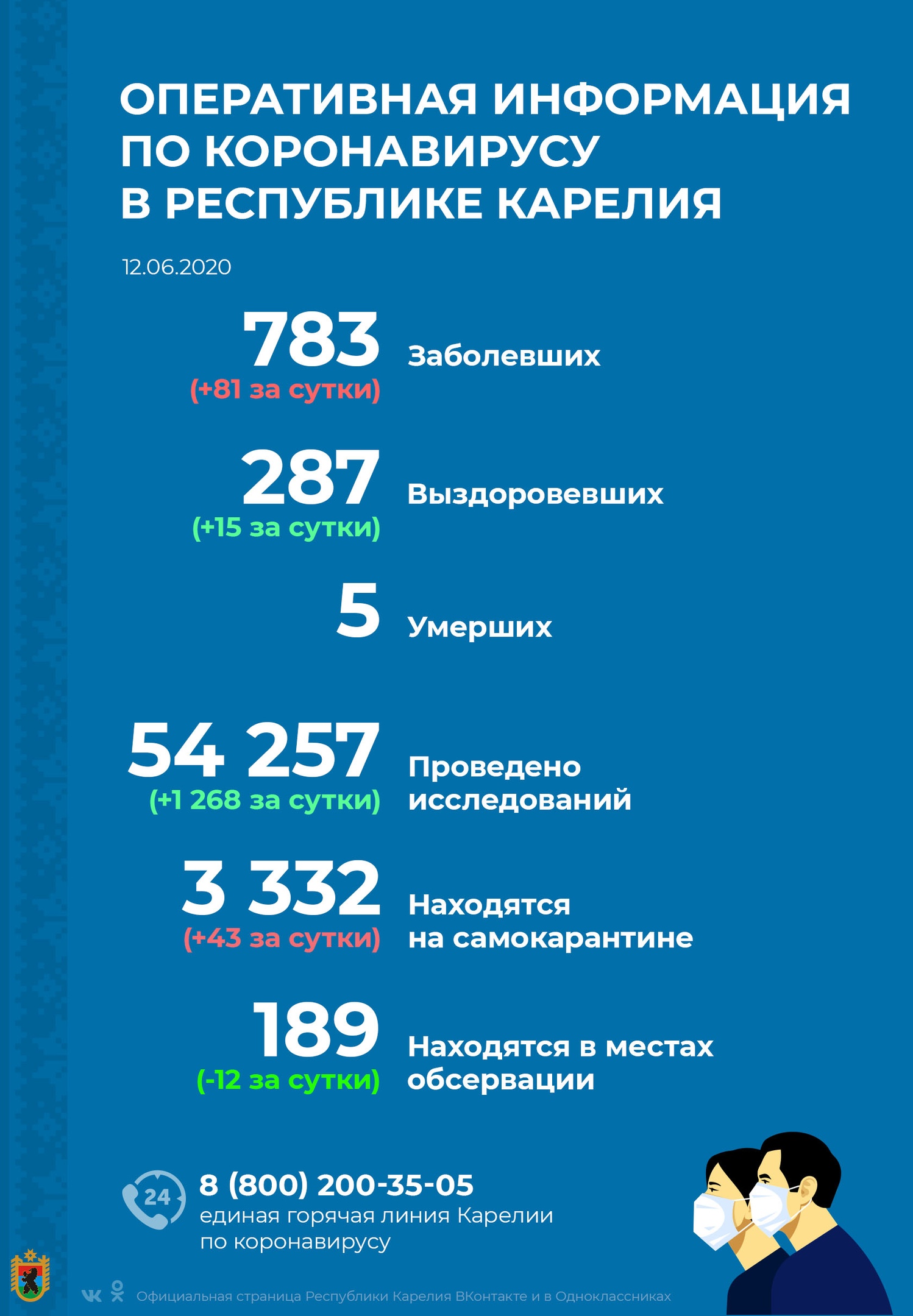 Еще три человека — это рабочие-вахтовики со стройплощадки Белопорожской ГЭС. Всего в Карелии 783 заболевших. Выздоровели за сутки 15 человек.