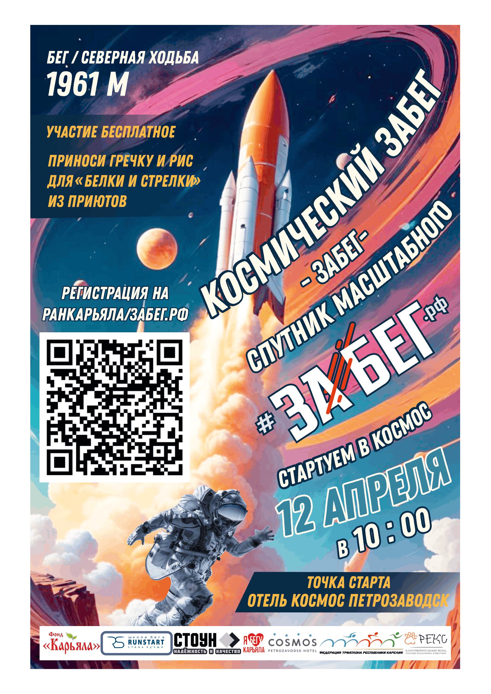 12 апреля, в День космонавтики, на Онежской набережной Петрозаводска пройдёт тематический забег «КосмоКарьяла»— спутник забега РанКарьяла.