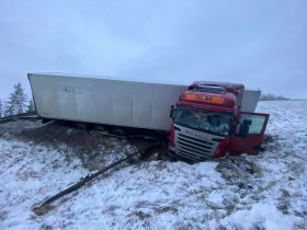 Фура с грузом съехала в кювет на 853 км автодороги «Кола».