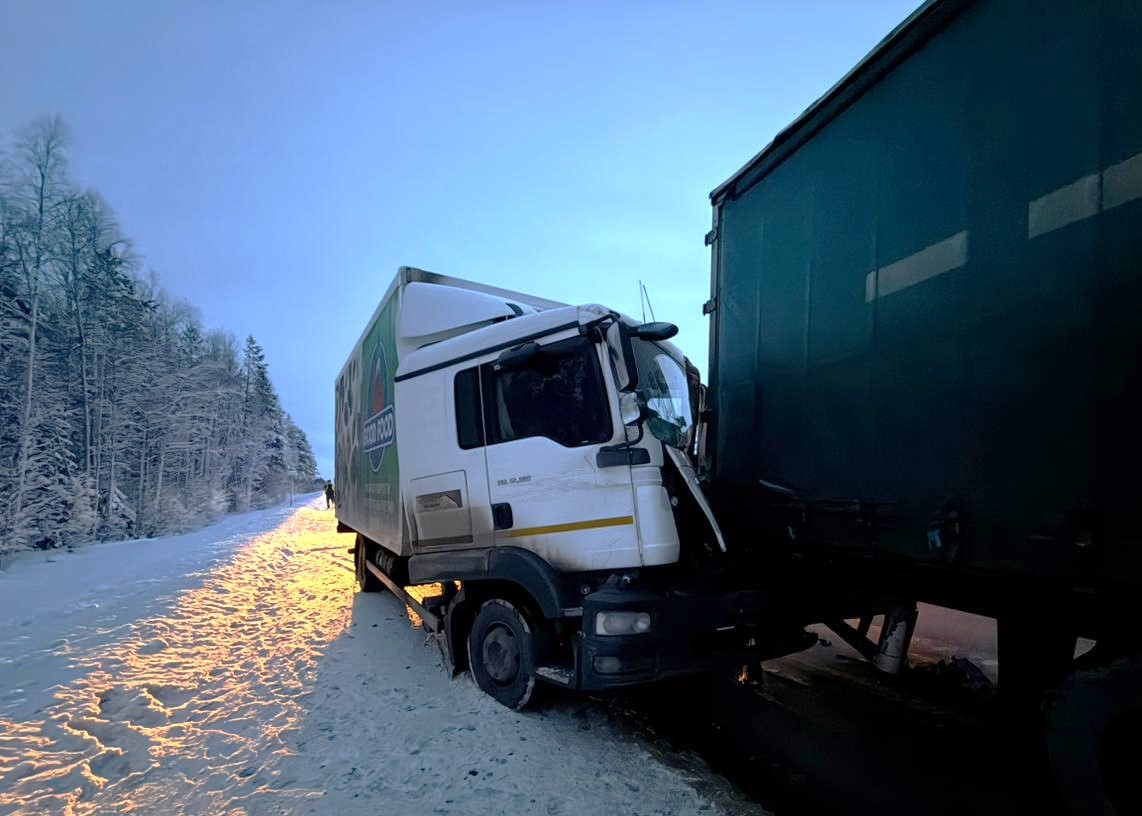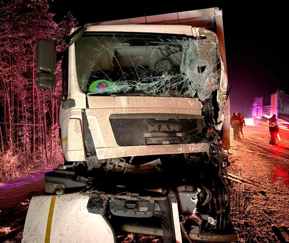 По предварительной информации, 44-летний водитель «MAN» не учел метеорологические условия и врезался в стоящий «Volvo» с полуприцепом. Водитель получил травмы и был госпитализирован.