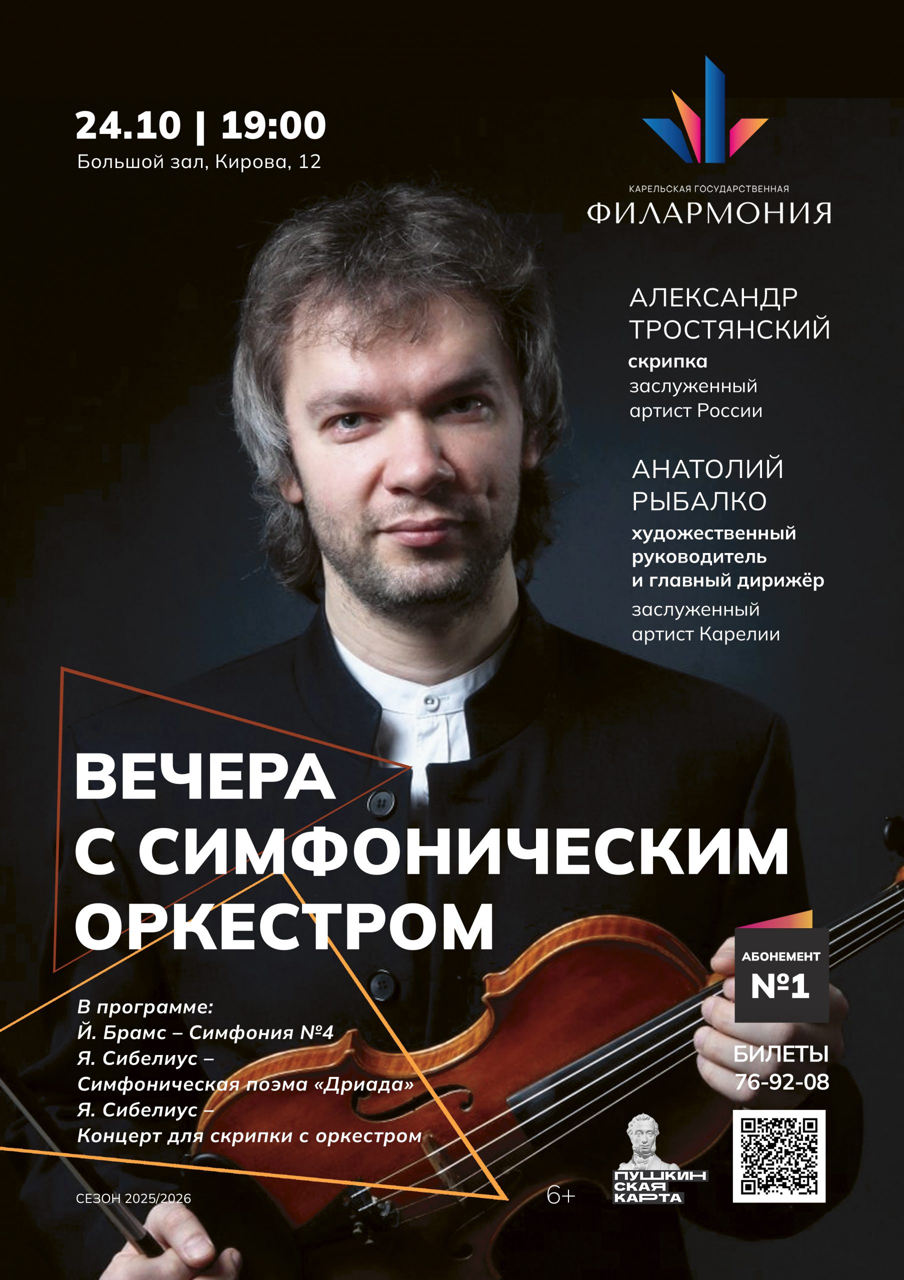Александр Тростянский — скрипач и педагог в третьем поколении, профессор Московской консерватории им. Чайковского. В репертуаре скрипача — более 60 концертов для скрипки с оркестром и огромное число камерной музыки. Александр Тростянский активно исполняет произведения композиторов XX и XXI веков. Он играет на современной скрипке, играет без «моста», чтобы быть ближе к скрипке.