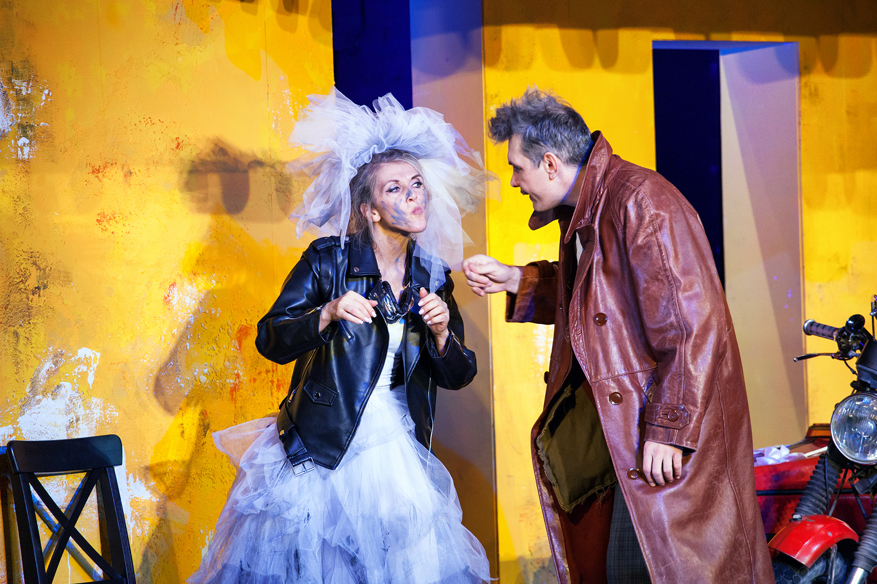 В прочтении режиссера нового спектакля Национального театра Карелии Даниила Безносова герои шекспировской комедии из некой сочиненной драматургом Италии попадают в более близкий нам мир. На сцене царит атмосфера средиземноморского городка, где под южным солнцем можно расслабиться и вволю пофлиртовать. «Укрощение строптивой» — это история про бесконечно далекие и, в то же время, неразрывно связанные между собой миры мужчин и женщин, а каждый персонаж обязательно в кого-то влюблен. Словесные пикировки и взаимные «шпильки» внезапных новобрачных Петруччо и Катарины никого не собьют с толку — между этими двумя рано или поздно вспыхнут нешуточные чувства.